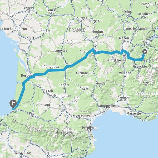 Prendre à droite et rejoindre A63. Continuer sur 154 kilomètres