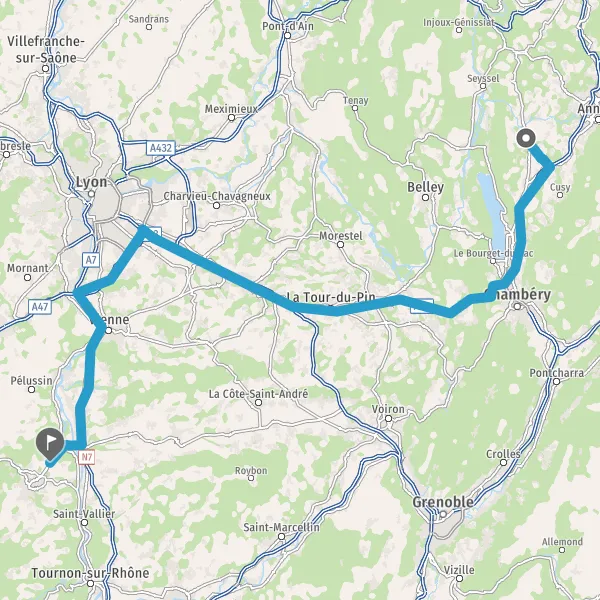 Prendre à droite et rejoindre A7. Continuer sur 33 kilomètres