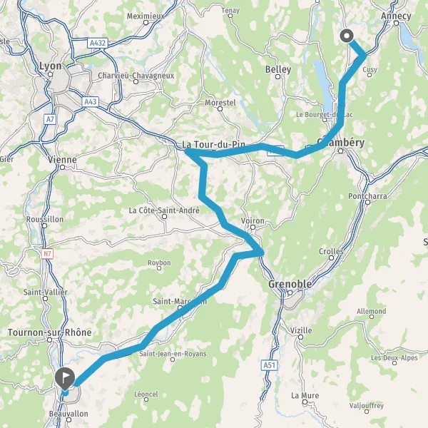 Prendre à droite et rejoindre A49. Continuer sur 71 kilomètres