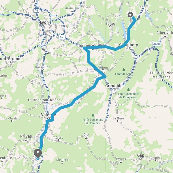 Continuer A43 sur 47 kilomètres