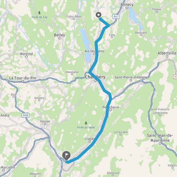 Continuer et rejoindre N201 E712 E70 (Avenue du Bourget-du-Lac). Continuer sur 16 kilomètres
