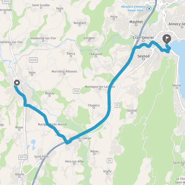 Au rond-point, prendre la 2ème sortie sur D16 (Route d'Annecy) et continuer sur 3 kilomètres
