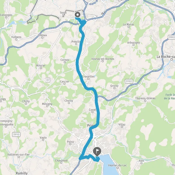 Au rond-point, prendre la 2ème sortie sur D1201 (Route d'Annecy) et continuer sur 1,1 kilomètre