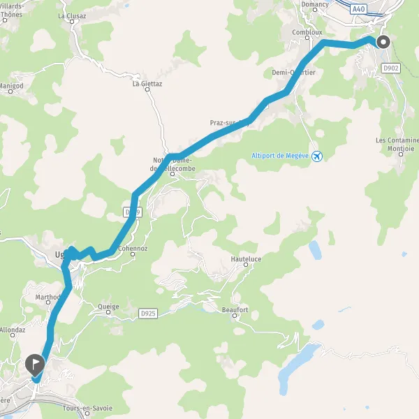 Au rond-point, prendre la 1ère sortie sur D909 (Avenue du Mont d'Arbois) et continuer sur 6,3 kilomètres
