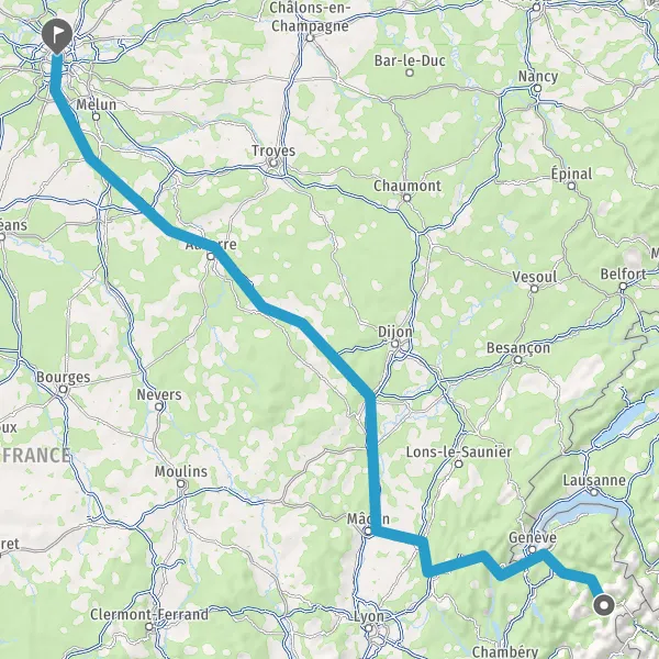 Prendre à droite et rejoindre A6. Continuer sur 294 kilomètres