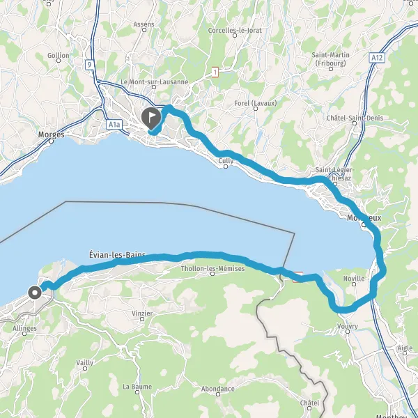 Au rond-point, prendre la 2ème sortie sur D1005 (Quai du Baron de Blonay) et continuer sur 17 kilomètres