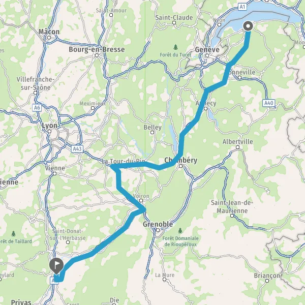 Continuer A43 sur 47 kilomètres