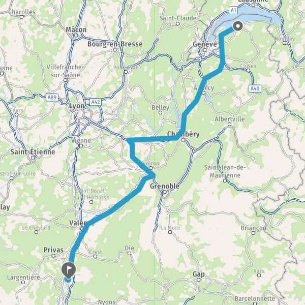 Prendre à gauche et rejoindre A7 E15. Continuer sur 28 kilomètres
