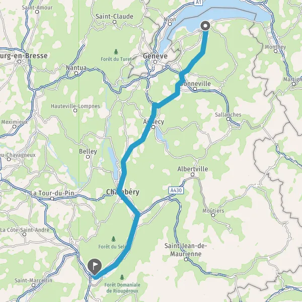 Continuer et rejoindre N201 E712 E70 (Avenue du Bourget-du-Lac). Continuer sur 16 kilomètres