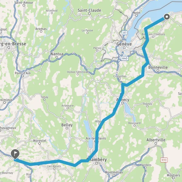 Au rond-point, prendre la 1ère sortie sur D1005 (Route de Genève) et continuer sur 4,8 kilomètres