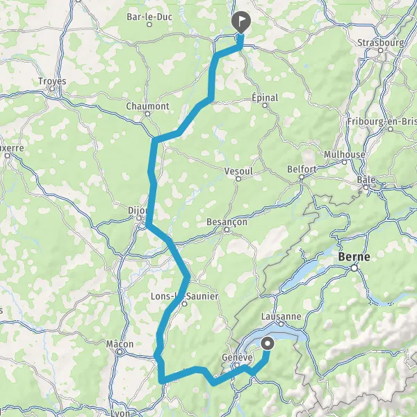 Entrer en Suisse et prendre 21 (Route Cantonale) sur 4,6 kilomètres