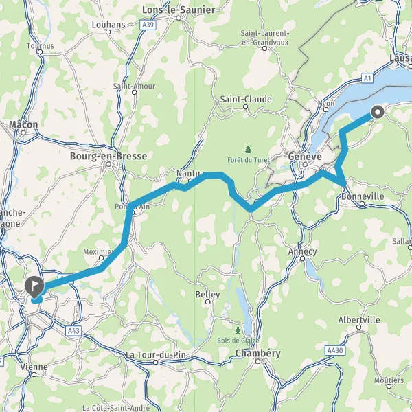 Au rond-point, prendre la 1ère sortie sur D1005 (Route de Genève) et continuer sur 4,8 kilomètres