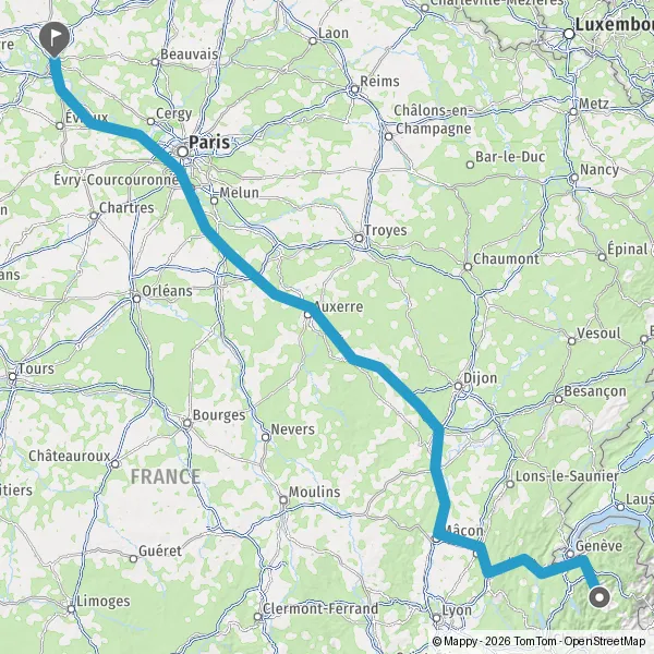 Prendre à droite et rejoindre A6. Continuer sur 294 kilomètres