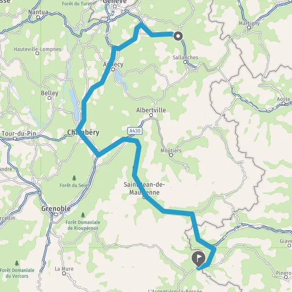 Prendre à droite et rejoindre A43 E70. Continuer sur 65 kilomètres