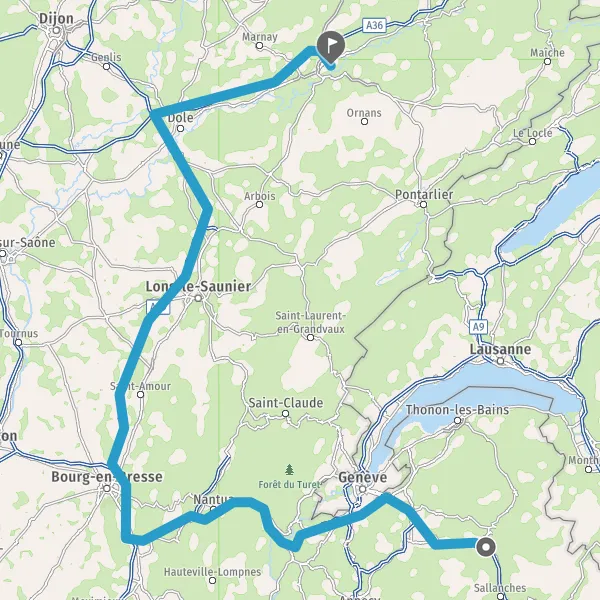 Prendre à droite et rejoindre A36 E60. Continuer sur 51 kilomètres