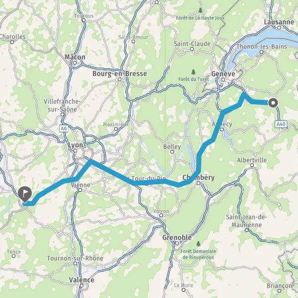 Prendre à gauche et rejoindre A46 E15 E70. Continuer sur 21 kilomètres