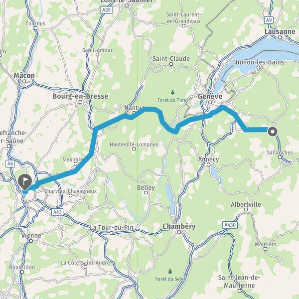 Avec le mode voiture, vous pouvez configurer vos options (type de véhicule, autoroute ou non, péage ou non, distance la plus courte), tout en ayant accès aux infos de circulation grâce à notre service d'info-trafic en temps réel. Ainsi faites des économies sur le coût ou la durée de votre voyage, en trouvant le trajet Cluses Lyon adapté à vos besoins.