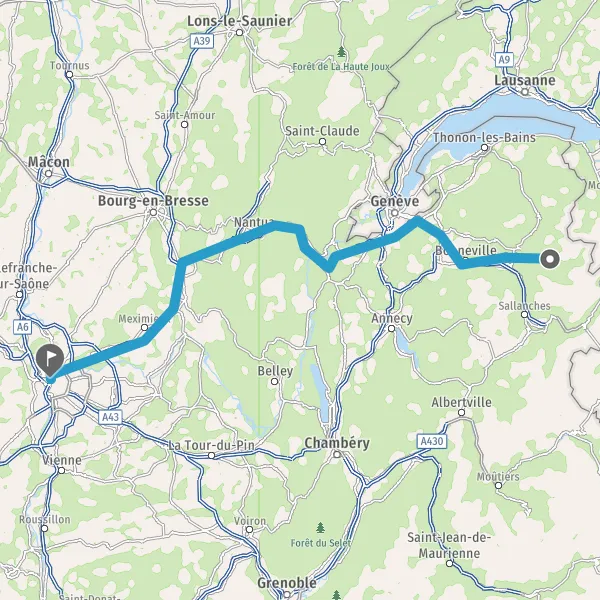 Prendre à droite et rejoindre A42 E611. Continuer sur 49 kilomètres