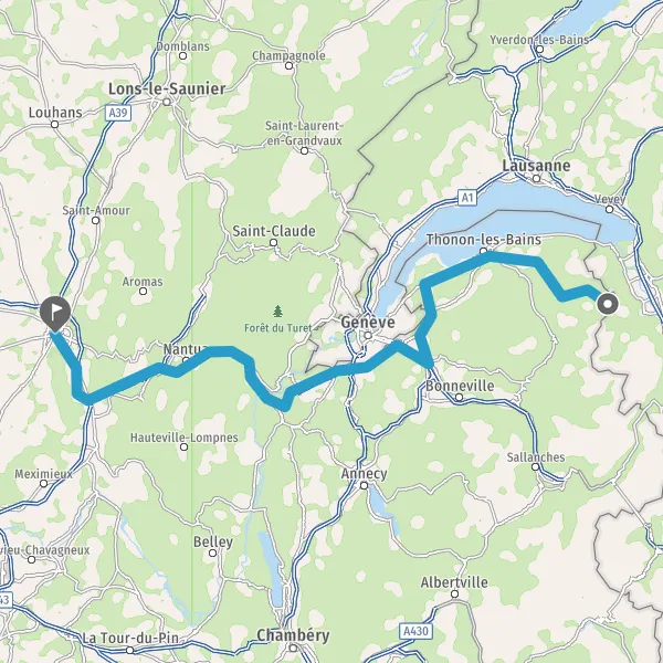 Entrer en Suisse et prendre Route de France sur 2 kilomètre