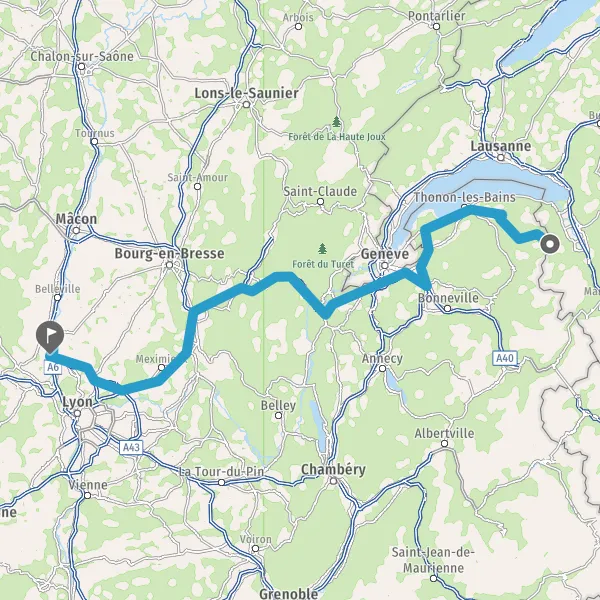 Prendre à droite et rejoindre D1005 (Contournement de Thonon-les-Bains). Continuer sur 6,9 kilomètres