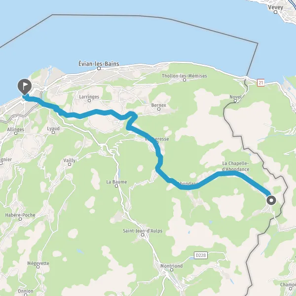 Tourner légèrement à droite sur D22 (Porte de la Vallée d'Abondance) et continuer sur 3,1 kilomètres