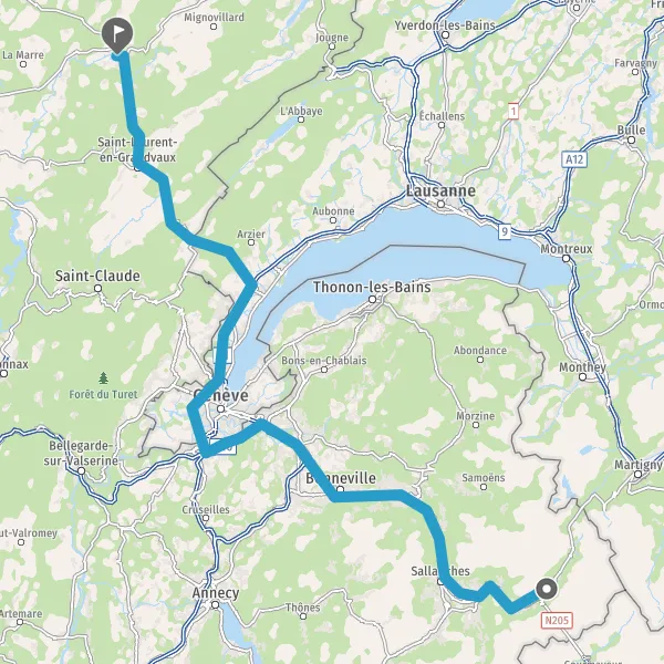 Au rond-point, prendre la 1ère sortie sur N5 (Route de Genève) et continuer sur 20 kilomètres