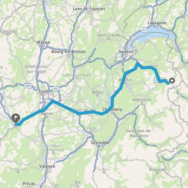 Prendre à gauche et rejoindre A46 E15 E70. Continuer sur 21 kilomètres