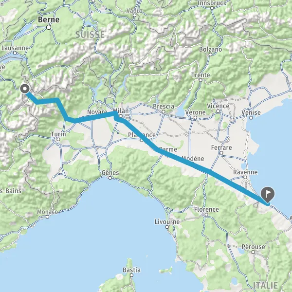 Entrer en Italie et prendre E25 T1 SS26dir SS26dir SS26dir (Traforo del Monte Bianco) sur 5,1 kilomètres
