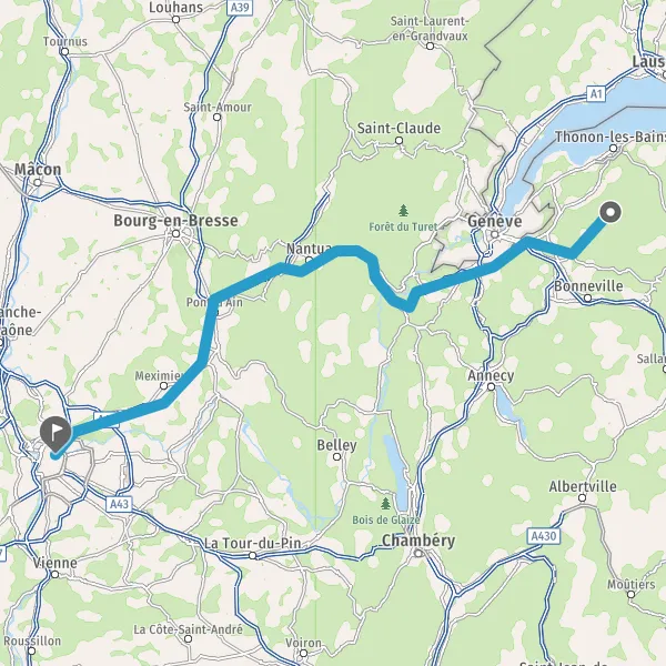 A40GenèveLausanneSaint-Julien-en-GenevoisBourg-en-BresseLyon