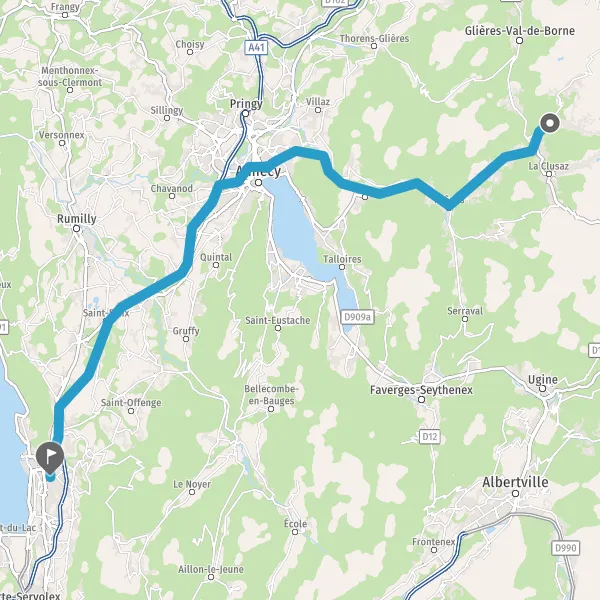 Au rond-point, prendre la 1ère sortie sur D909 (Route de Thônes) et continuer sur 4,1 kilomètres