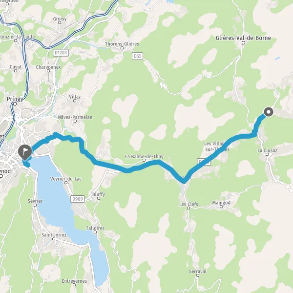 Prendre à droite et rejoindre D5 (Avenue du Parmelan). Continuer sur 400 mètres