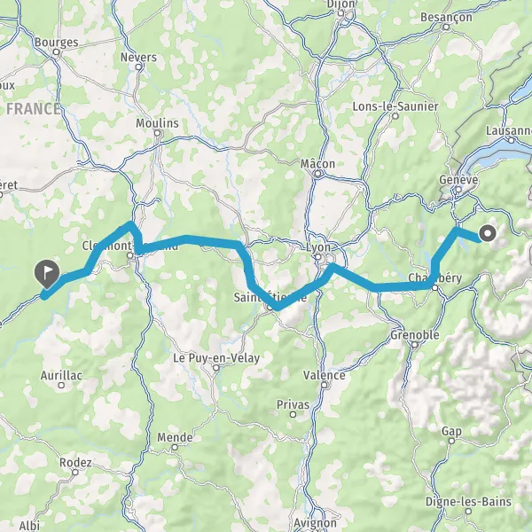 Continuer et rejoindre A89 E70. Continuer sur 83 kilomètres