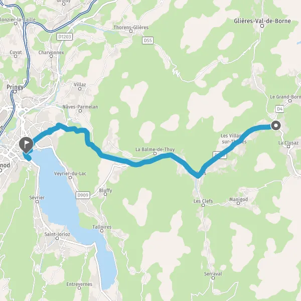 Prendre à droite et rejoindre D5 (Avenue du Parmelan). Continuer sur 400 mètres