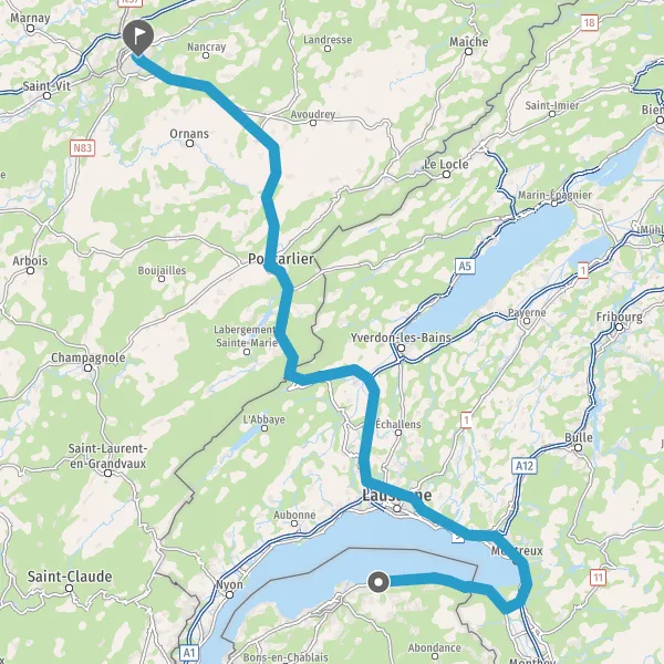 Entrer en France et prendre N57 E23 (Route de Vallorbe) sur 4,9 kilomètres