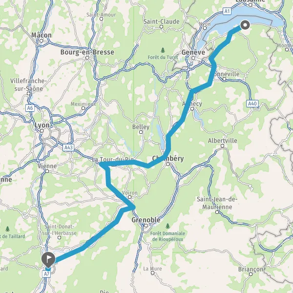Prendre à droite et rejoindre A49. Continuer sur 71 kilomètres