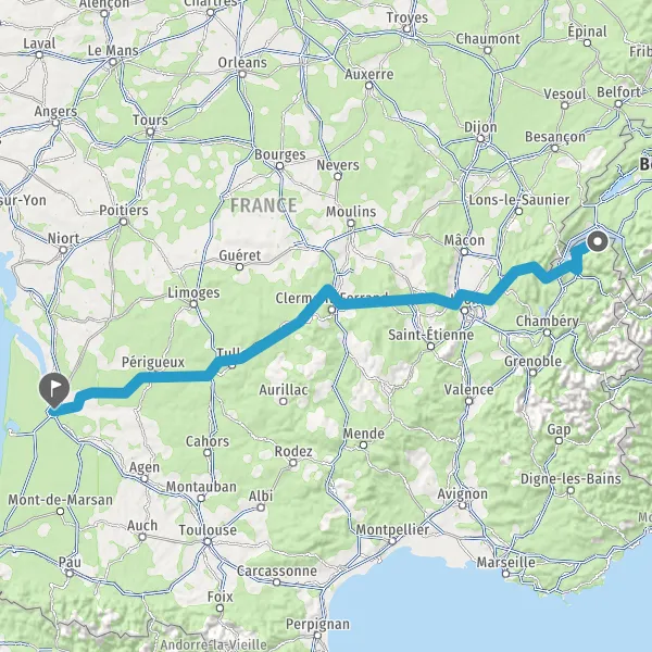 Prendre à droite et rejoindre A89 E70. Continuer sur 161 kilomètres