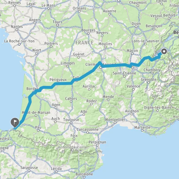 Prendre à droite et rejoindre A63. Continuer sur 192 kilomètres