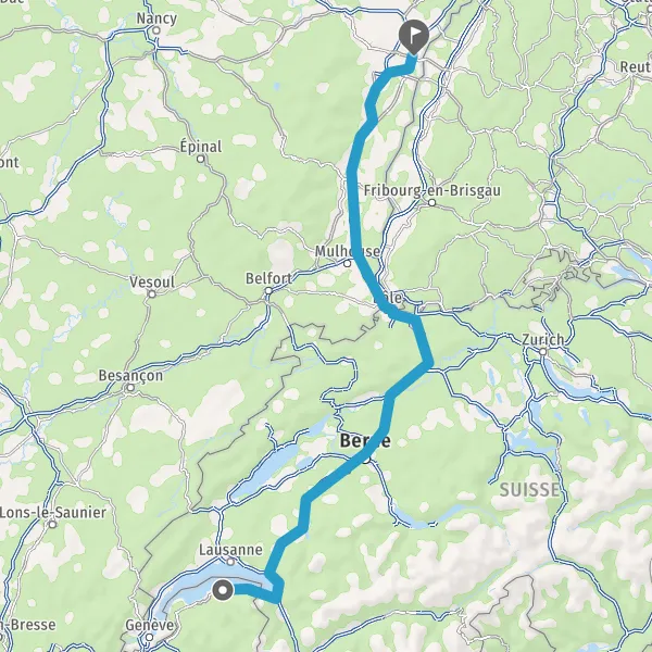 Entrer en Suisse et prendre 21 (Route Cantonale) sur 4,6 kilomètres