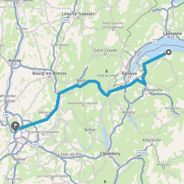 Continuer et rejoindre D383 (Boulevard Laurent Bonnevay). Continuer sur 6,3 kilomètres