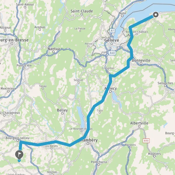 Au rond-point, prendre la 2ème sortie sur D1005 (Route de Genève) et continuer sur 4,8 kilomètres