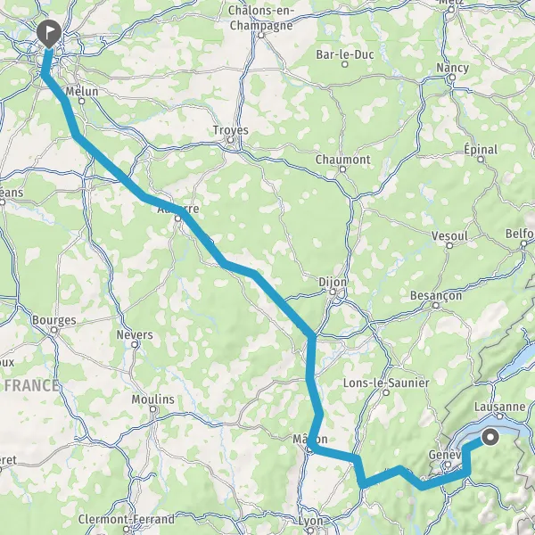 Prendre à droite et rejoindre A6. Continuer sur 294 kilomètres