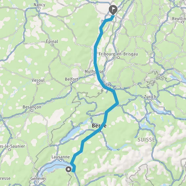 Entrer en Suisse et prendre 21 (Route Cantonale) sur 4,6 kilomètres
