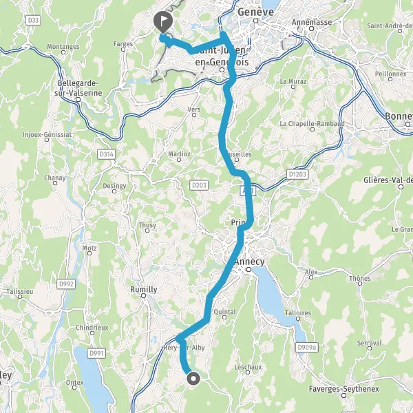 Tourner légèrement à droite sur Route de Chancy et continuer sur 1,4 kilomètre