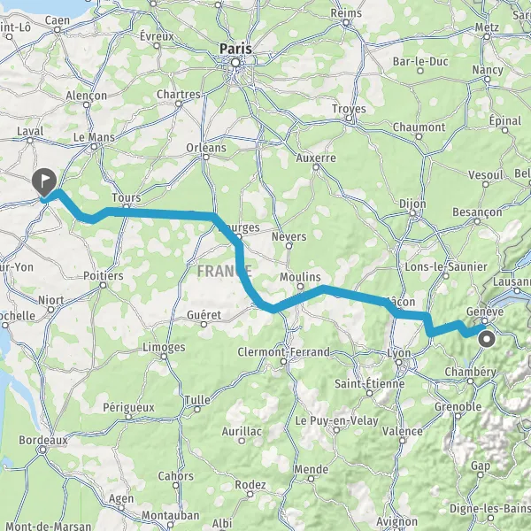 Prendre à droite et rejoindre A85 E604. Continuer sur 205 kilomètres
