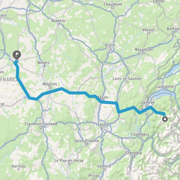 A40ClusesGenèveAnnecyThonon-les-BainsEvian-les-BainsLyonParis
