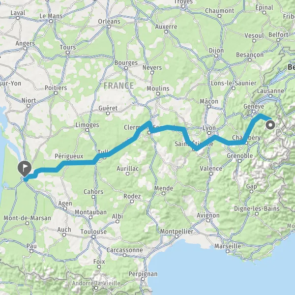 Prendre à droite et rejoindre A89 E70. Continuer sur 161 kilomètres