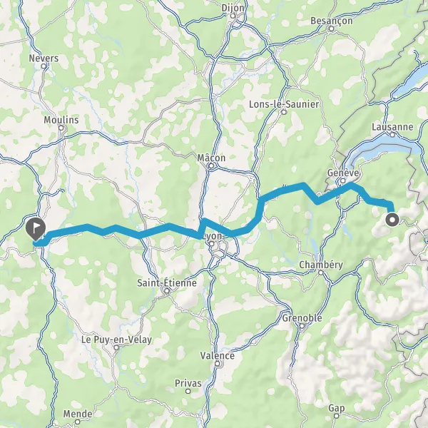 Continuer et rejoindre A89 E70. Continuer sur 77 kilomètres