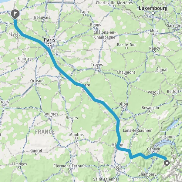 A40ClusesGenèveAnnecyThonon-les-BainsEvian-les-BainsLyonParis