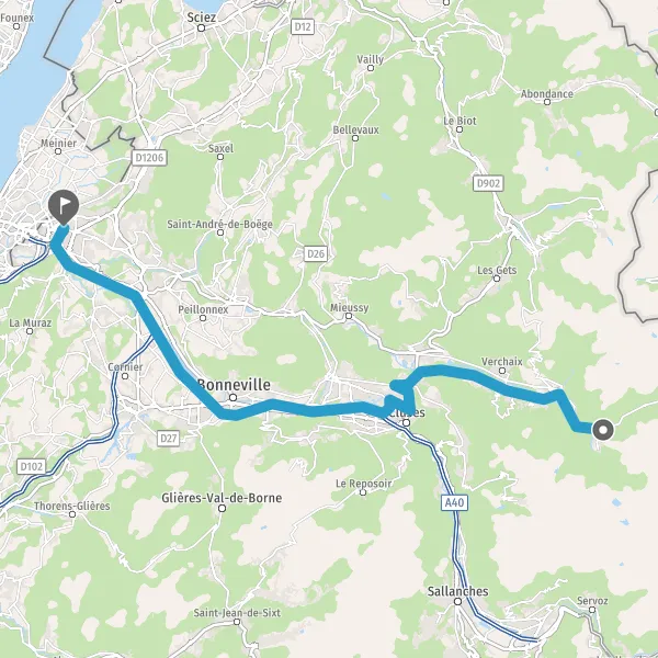 Au rond-point, prendre la 1ère sortie sur D907 (Avenue du Léman) et continuer sur 3 kilomètres