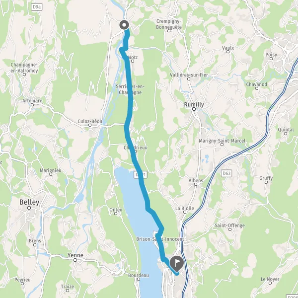 Tourner légèrement à droite sur D991 (Route de Seyssel) et continuer sur 5,4 kilomètres